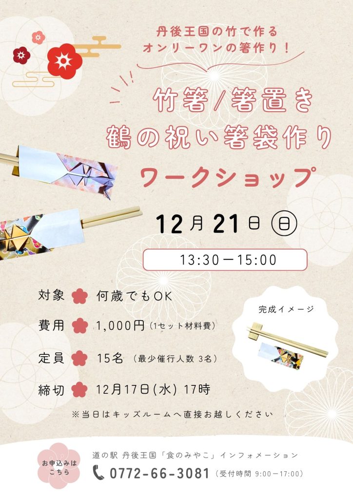 『竹箸・箸置き・鶴の祝い箸袋づくりワークショップ』を開催します!